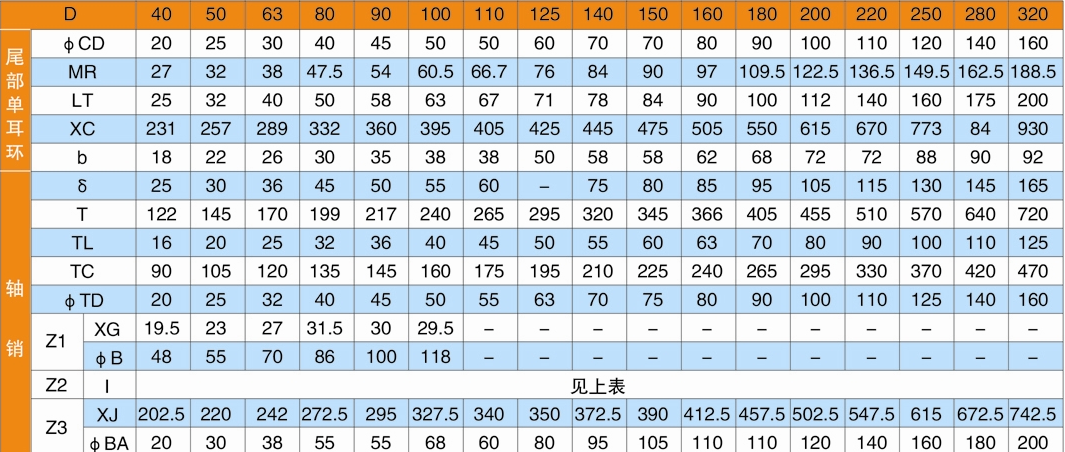 F2=尾部長方法蘭(用于缸徑D≤125);