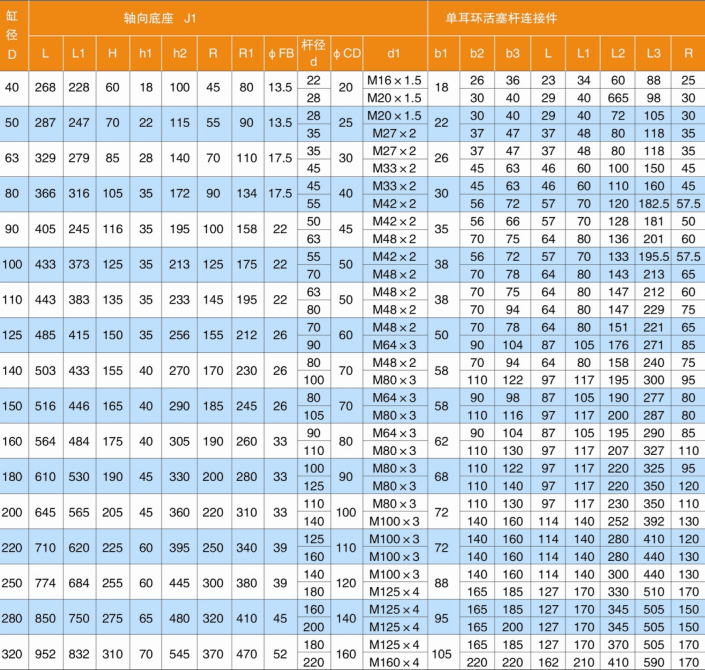 F1=頭部長方法蘭(用于缸徑D≤125);