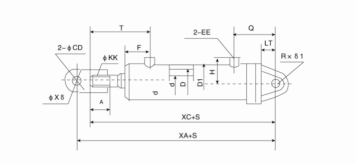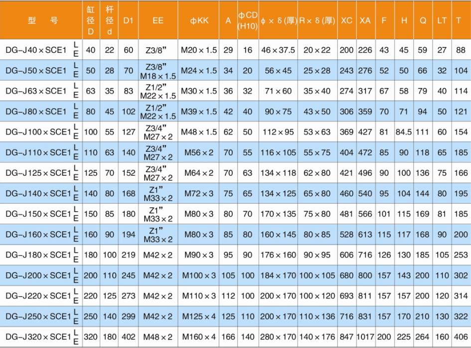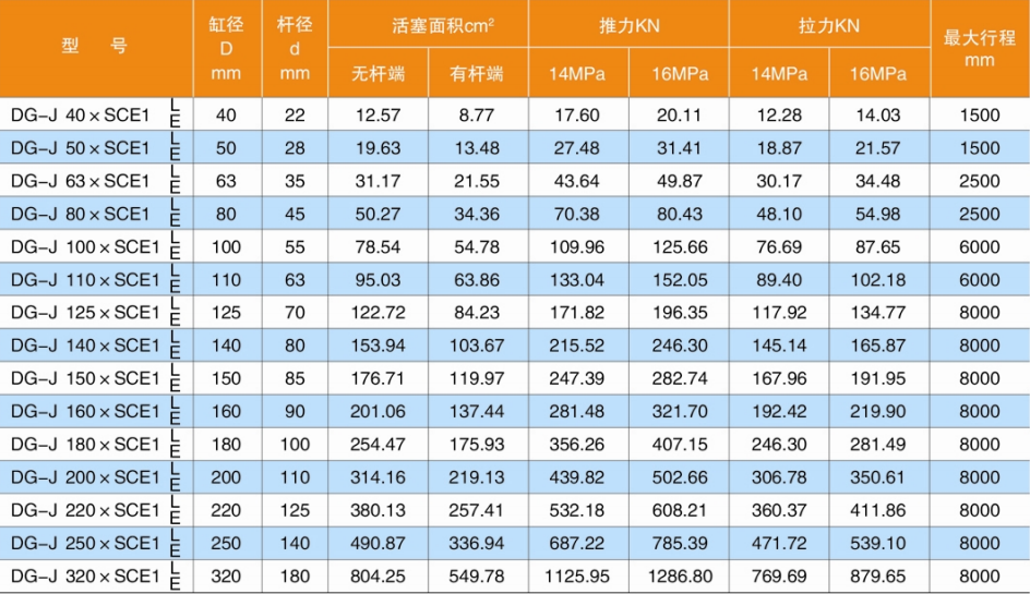 L:活塞桿連接方式代號(hào) L=螺紋連接;E=耳環(huán)連接
